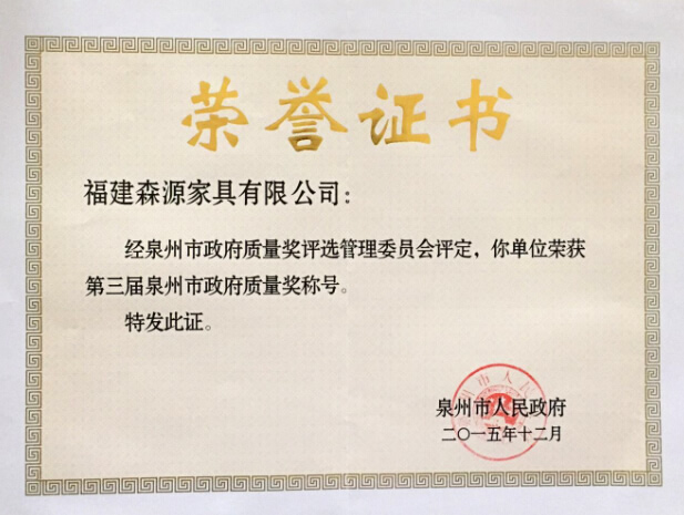 In April this year, in Quanzhou City, the National Quality City Model City Mobilization Conference and the 2016 City Quality Supervision Work Conference were held. Senyuan Furniture (stock code: 000663) won the third Quanzhou Municipal Government Quality Award. Following another weight quality award since winning the Nanan Quality Award in 2015. This is not only the Quanzhou government’s enthusiasm for the custom furniture industry - Senyuan furniture, but also the brilliant testimony of Senyuan’s 20 years of quality pursuit!