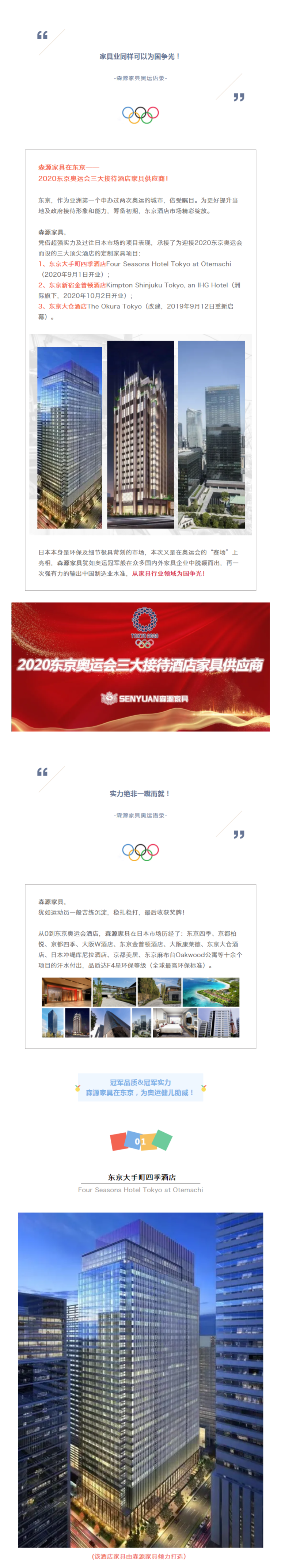 憑借超強(qiáng)實(shí)力及過往日本市場的項(xiàng)目表現(xiàn),承接了為迎接2020東京奧運(yùn)會而設(shè)的三大頂尖酒店的定制家具項(xiàng)目: