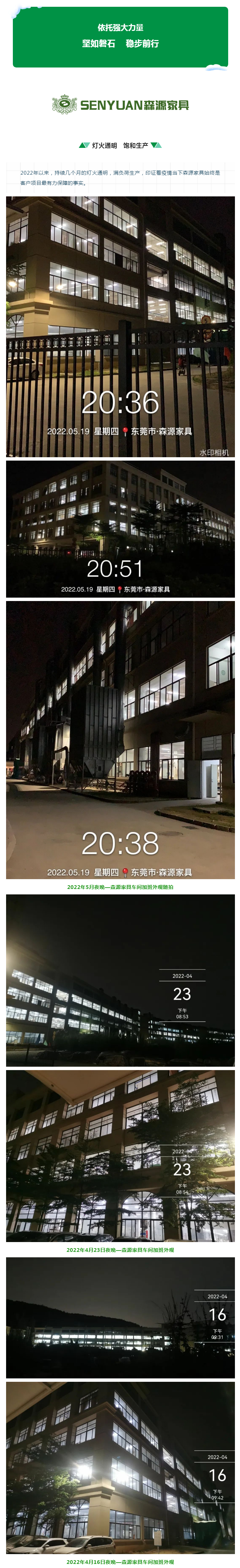 2022年以來,持續(xù)幾個月的燈火通明,滿負荷生產(chǎn),印證著疫情當下森源家具始終是客戶項目*有力保障的事實。