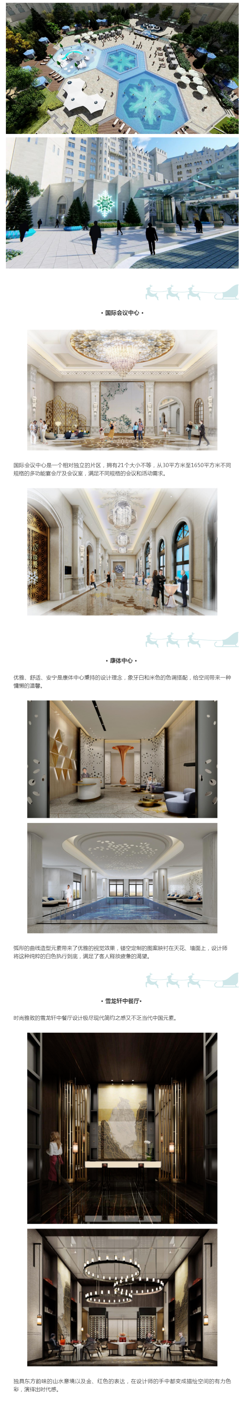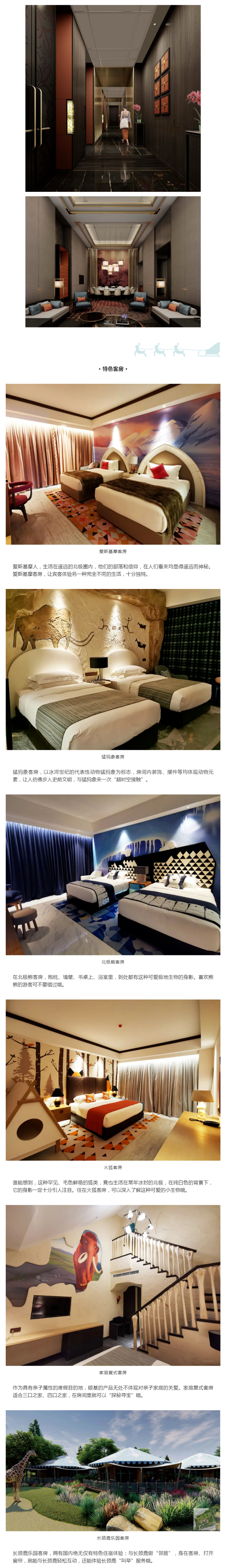 秉承人類與動物和諧相處的設計理念,為游客精心打造了一個童話世界:共擁有1314間主題客房、風格鮮明的特色主題餐廳及中餐廳、互動式雪鹿全日自助餐廳、3151㎡國際會議中心及室外婚禮儀式亭、琳瑯滿目的商業(yè)街、特色燒烤露營樂園、室外滑道游樂園、9洞迷你高爾夫、健身中心、足浴館、兒童駕校、室內外恒溫泳池等一系列打造酒店內部配套設施。